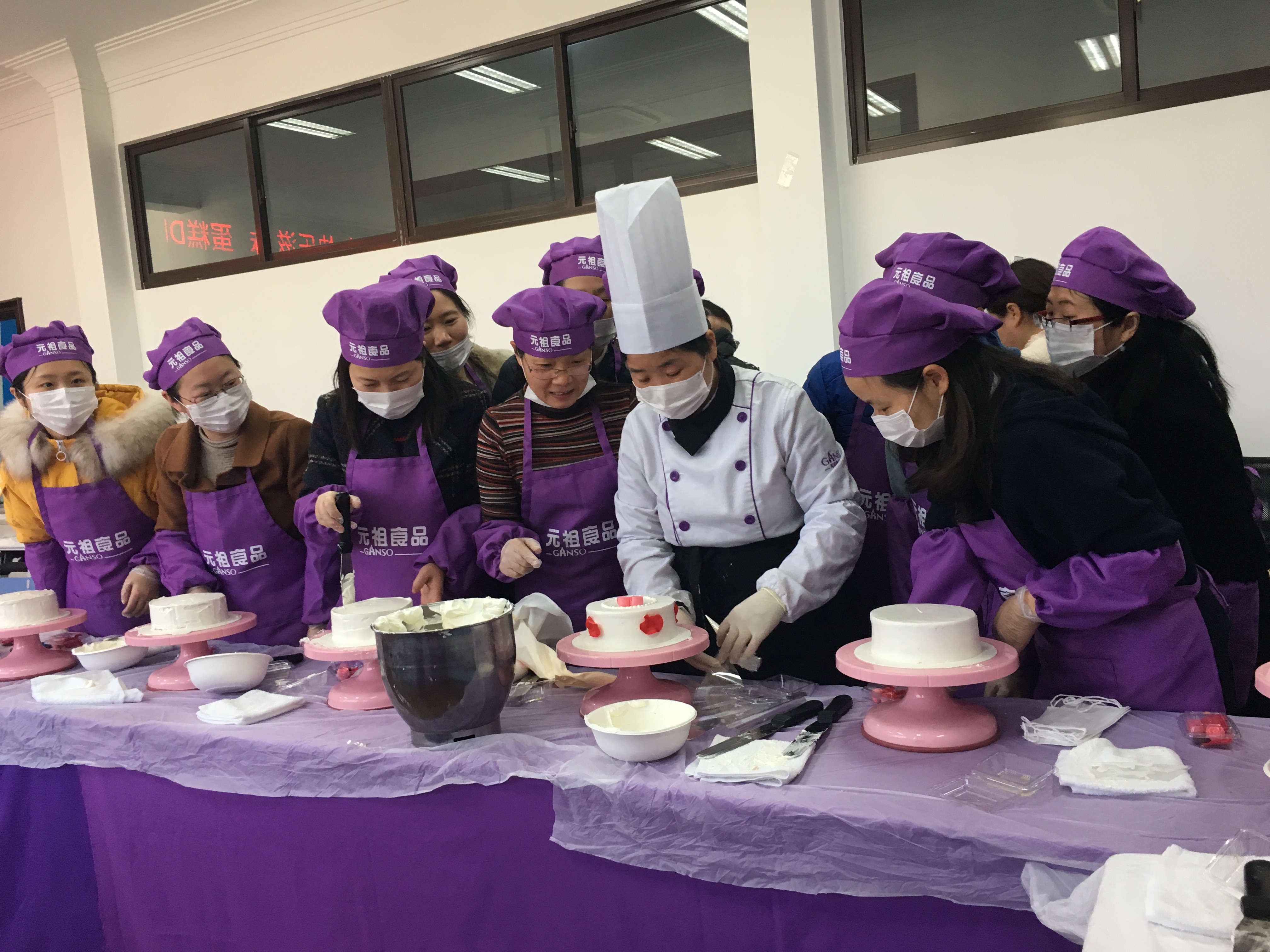 活动由工会主席宋亚琼老师主持,陈元芳书记亲临现场表示祝贺,活动在轻松愉悦的氛围中开始,教师首先每人分到烘焙店提前准备好的蛋糕胚,接着蛋糕老师从摸坯、裱花、构图、点缀等流程进行了一一的讲解和示范,并为现场每位女教师进行悉心指导。女教师们充分发挥自己的想象力、创造力,从半成品到成品再到装饰,经过两小时的创作,作出了一个个样式别致的专属蛋糕。