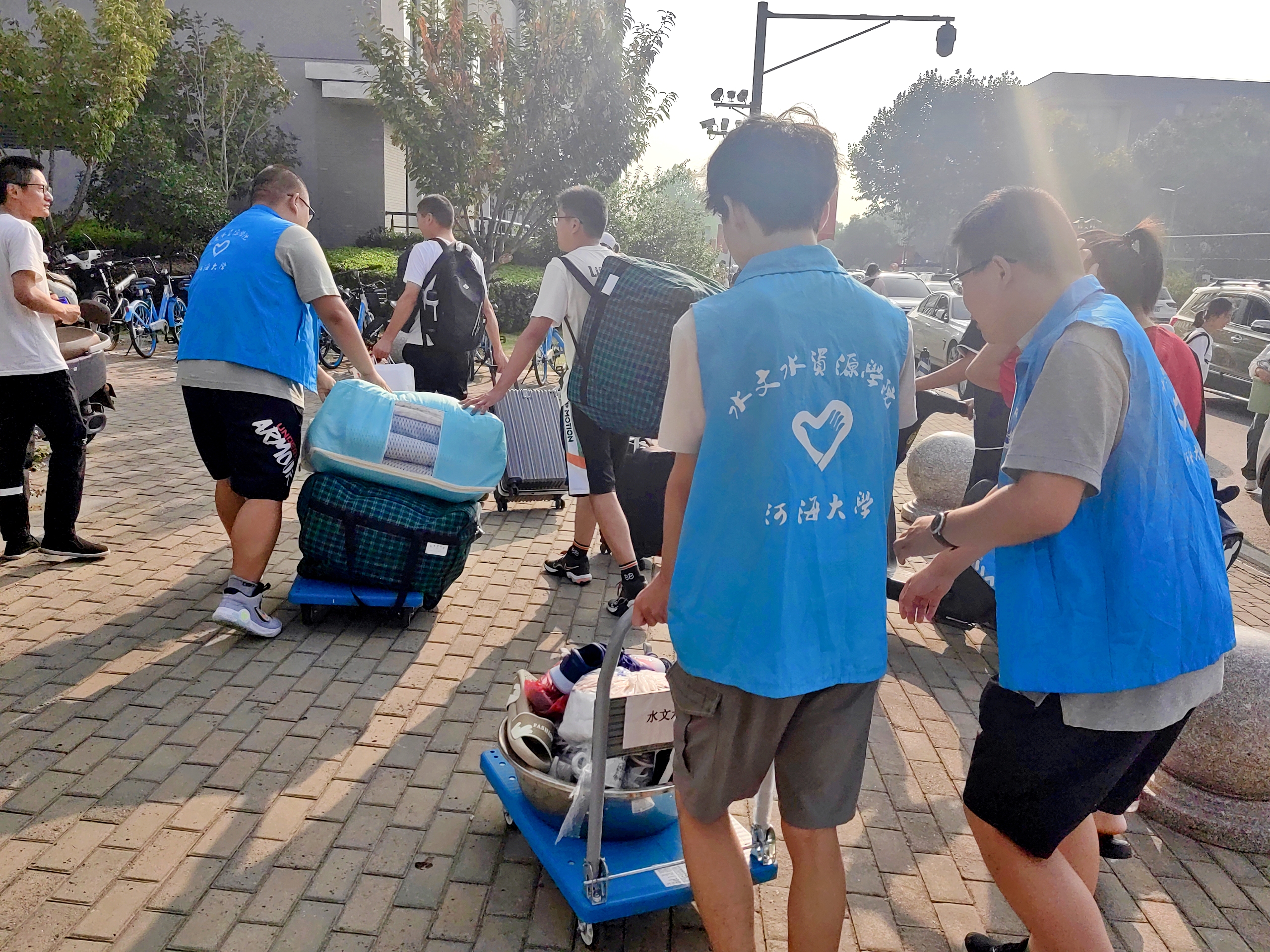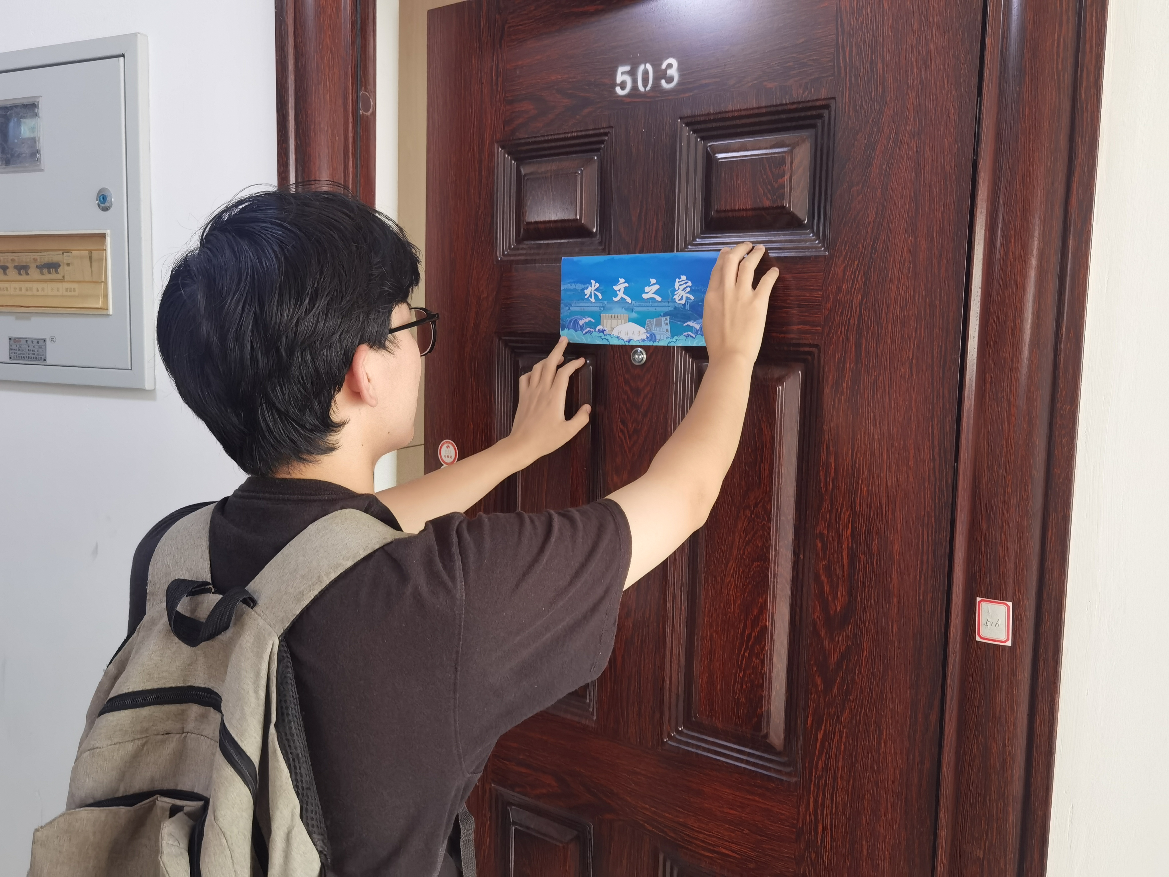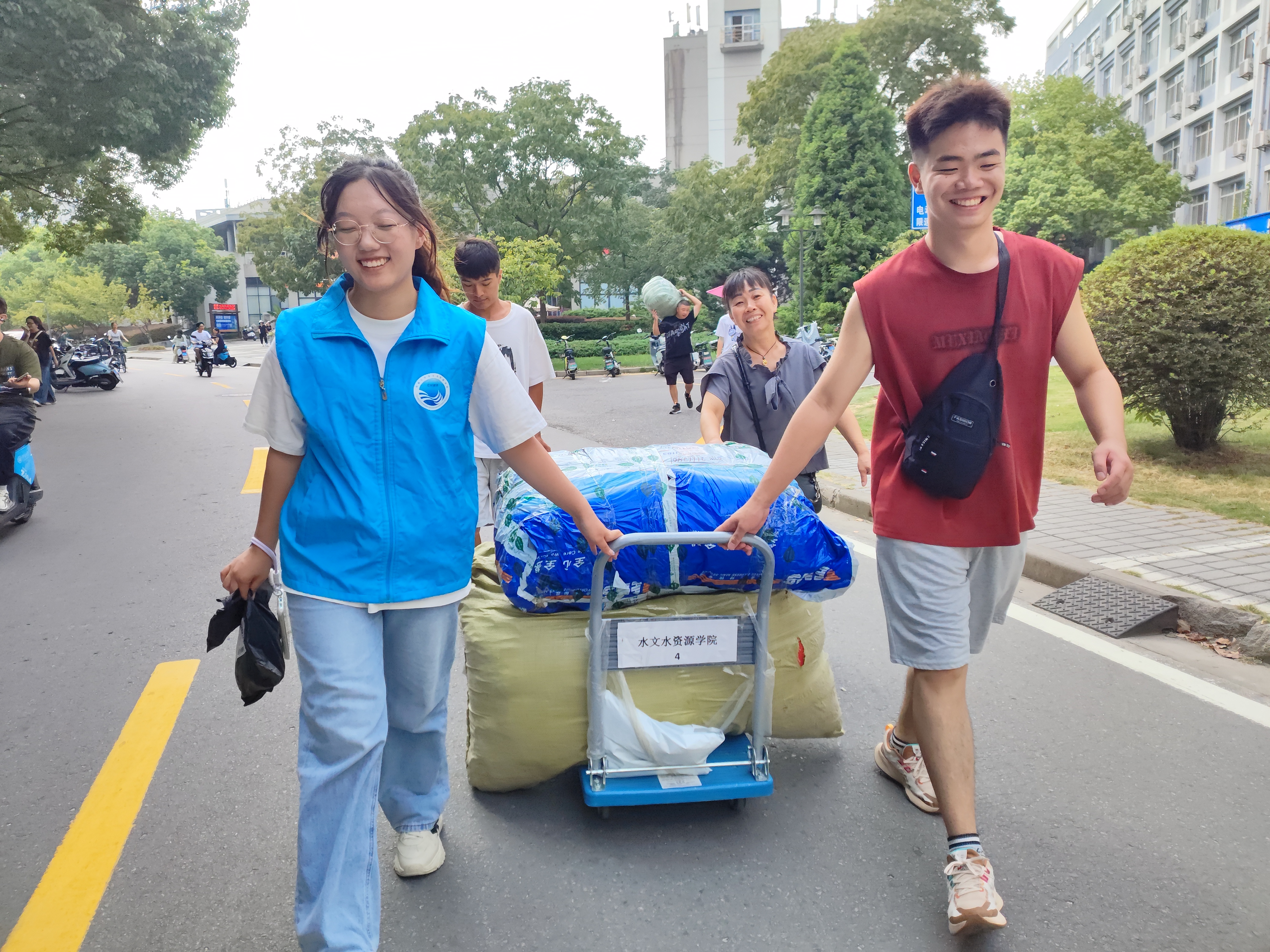 此外,为保证各项迎新工作的顺利开展,学院在各年级招募了百余名志愿者,负责文体中心报到处、宿舍楼下的接待服务。他们为新生指引道路、搬运行李、拍照纪念,耐心讲解入学注意事项并解答疑惑,为新生与学院的第一次相聚保驾护航。学院还专门定制了门贴“水文之家”,组织志愿者在新生宿舍检查时贴在了宿舍门上,让新生们能在回到宿舍楼第一时间看见“水文之家”,找到在河海的“新家”。