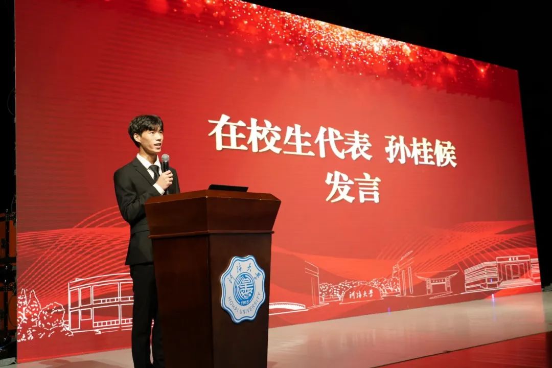 孙桂候在日常学习生活中充分发挥学生党员的模范带头作用,并积极参加党内活动和各类红色研学活动。他作为领学人为党员同学们和低年级团员同学主讲党课,带领同学们共同学习中国共产党人的精神谱系;作为党员代表参加接力诵读《中国共产党简史》,号召同学们一起在党史学习中坚定理想信念,不断奋勇向前;作为党员先锋岗的一员,他认真做到“亮身份、树形象、作表率”,结对帮扶困难同学,并面向低年级开展经验分享会。今年9月,他还在学院2023级本科生开学典礼上作为在校生代表发言。此外,孙桂候作为河海大学“闻天”管乐团单簧管声部的一员,在建党百年文艺晚会等多个舞台上奏响了《红旗颂》等红色乐曲,用音乐传承红色经典。
