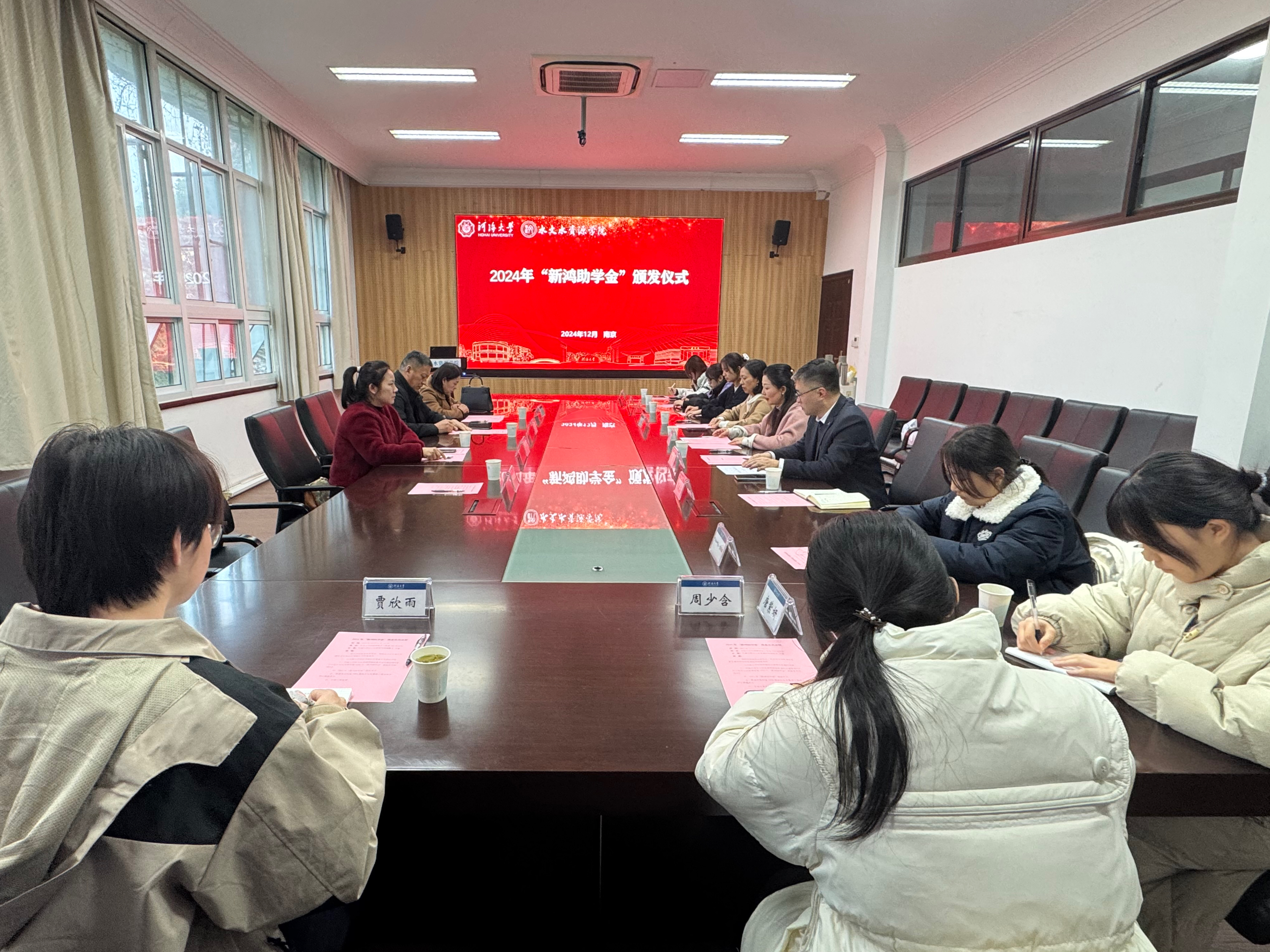 12月11日,我院举行2024年“新鸿助学金”颁发仪式。山东新之宇科技有限公司董事长李新红一行、9001cc金沙以诚为本党委书记石朋、国内合作发展处副处长、校友会办公室副主任、教育基金会办公室副主任李维以及部分师生代表出席仪式。仪式由学院副院长任黎主持。