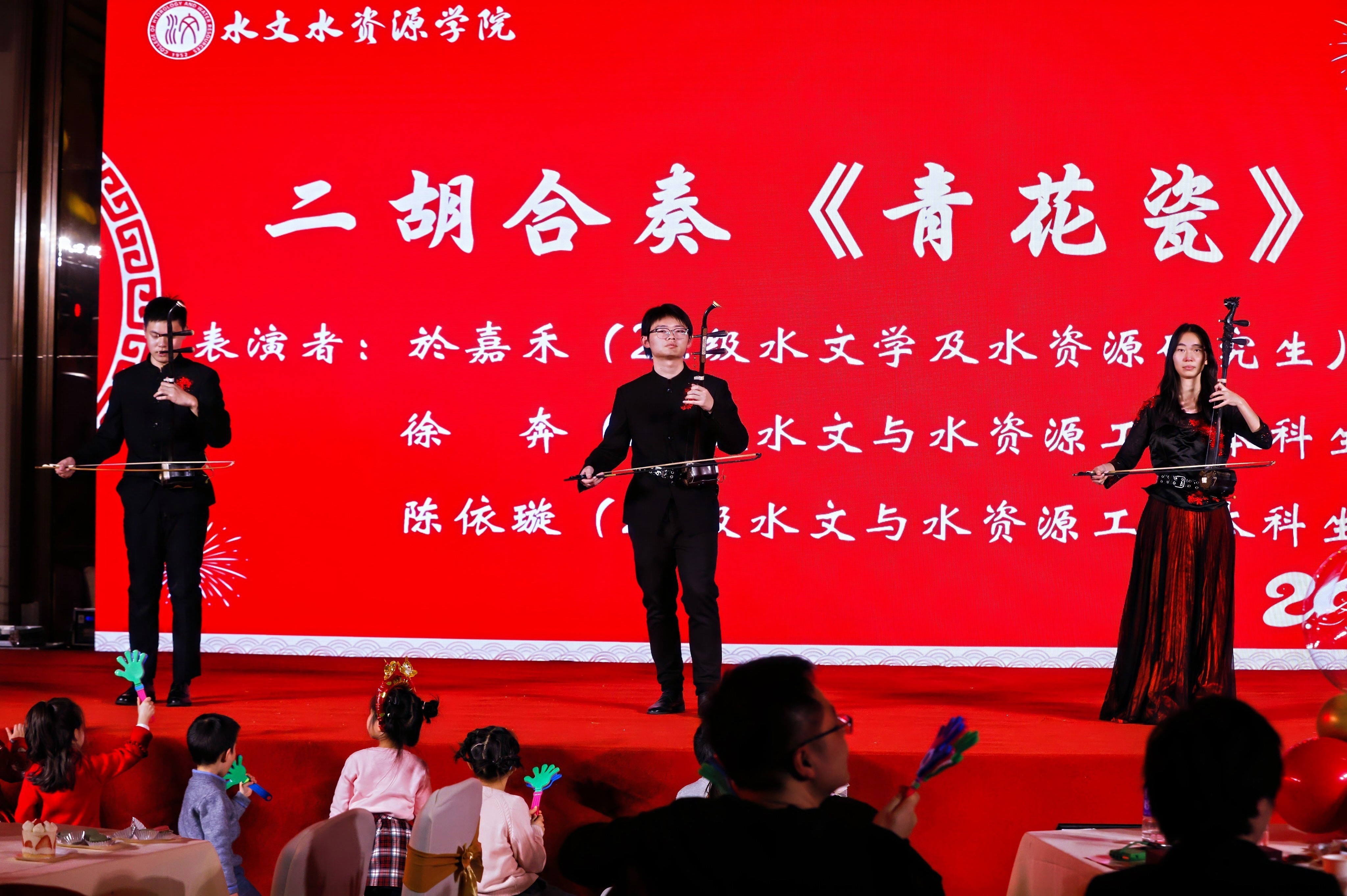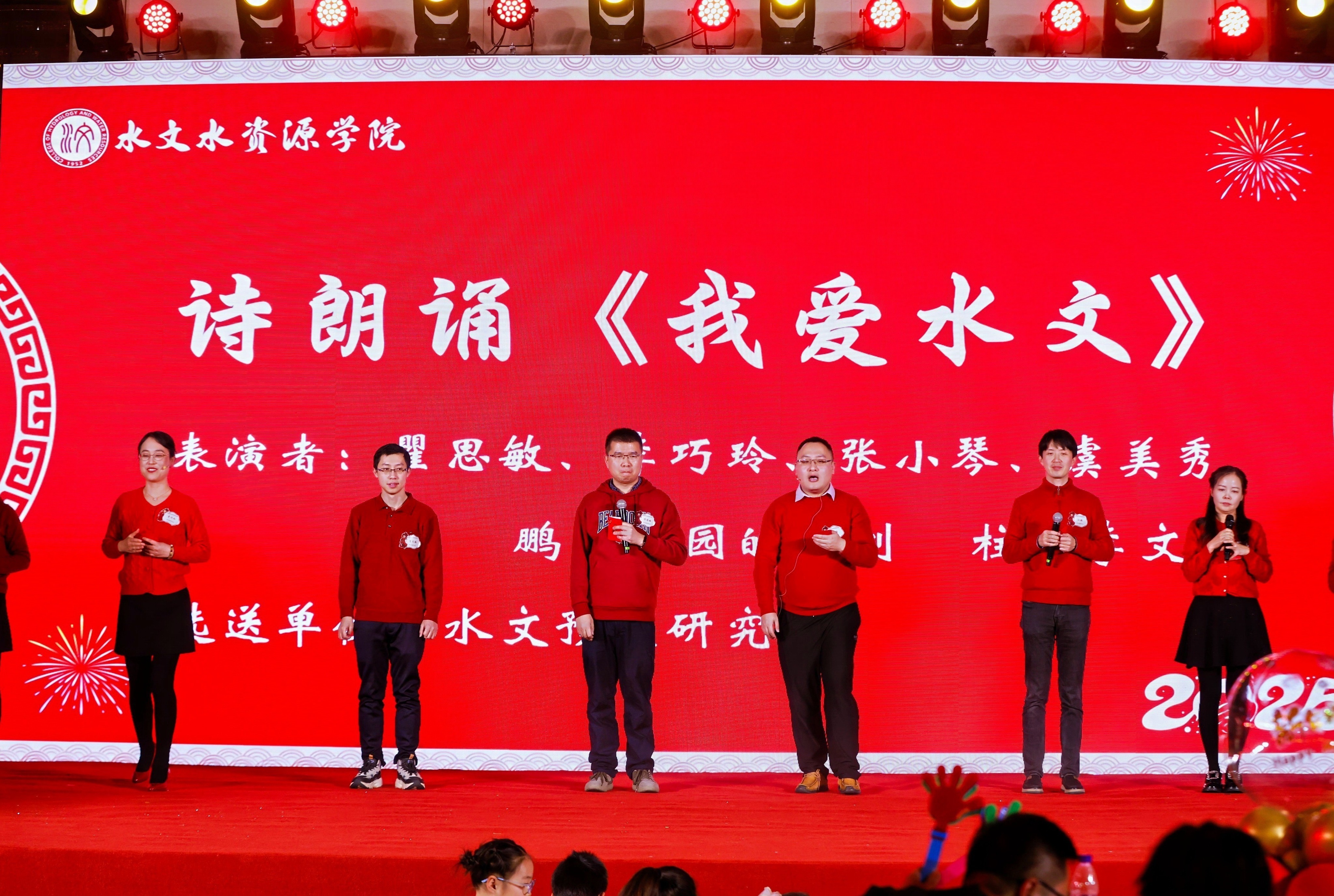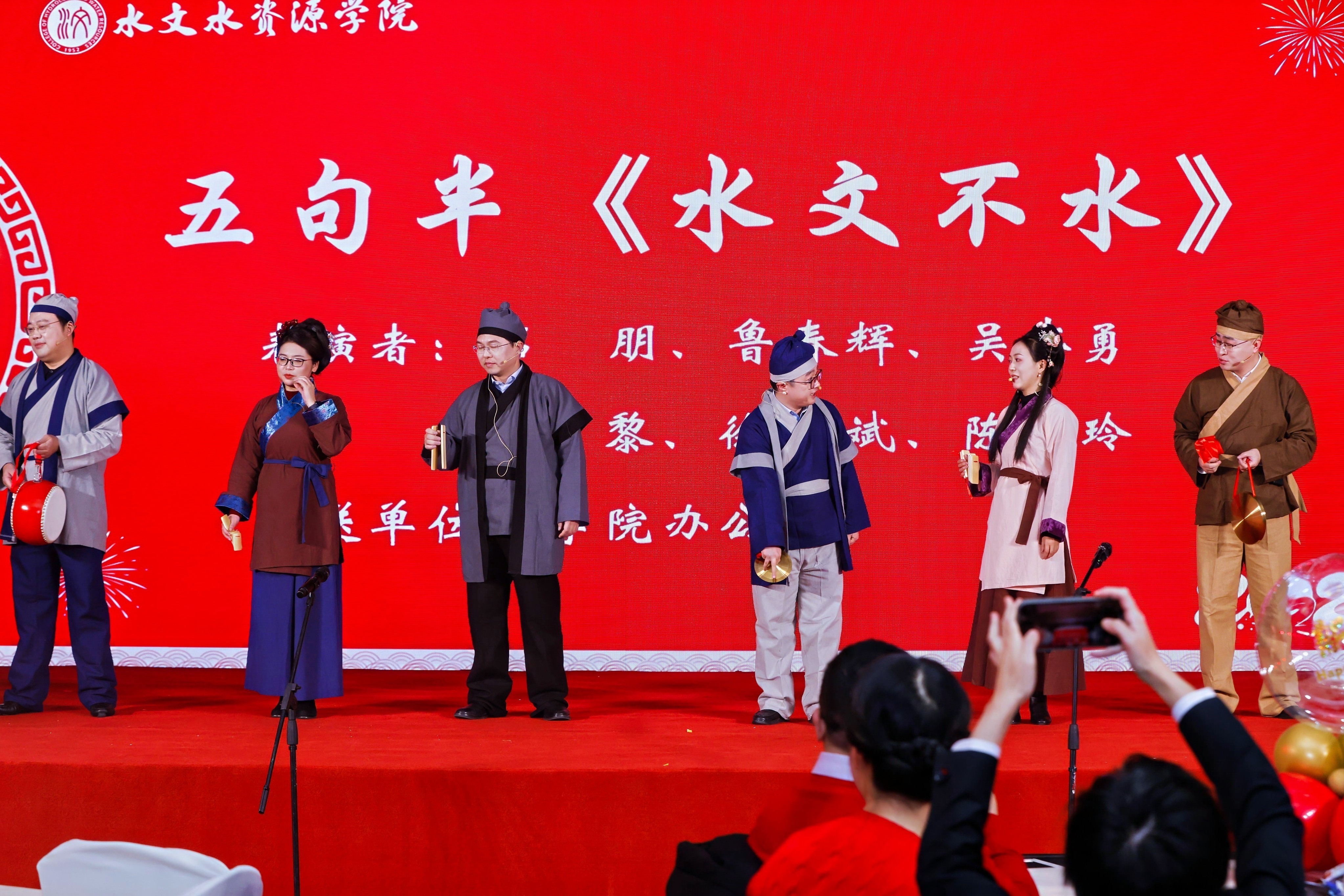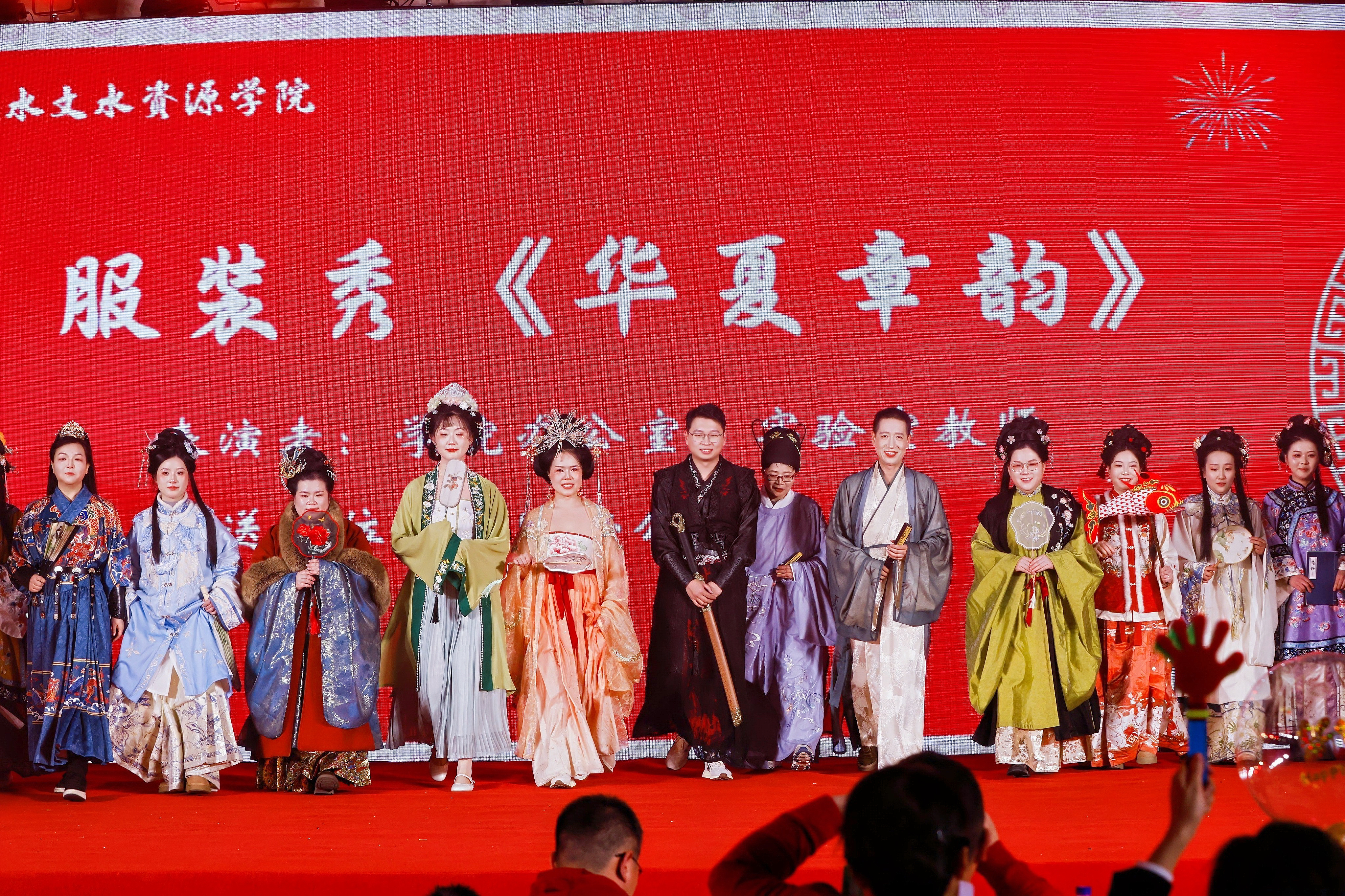活动在舞蹈《Earthquake》中拉开序幕,动感的舞步与音乐节拍瞬间点燃了现场氛围;学院领导班子精心编排的五句半节目《水文不水》,回顾了学院一年来的辉煌成绩,并向全体师生送上深切祝福;水资源研究所杨光老师的《异乡人》深情演绎,触动心弦;学生二胡合奏《青花瓷》琴声悠扬,古朴悦耳;相声《新阴阳五行》笑点不断,掌声连连;学院办公室、实验室老师们身着各朝代传统服饰带来的《华夏章韵》服装秀,生动展现了中华千年服饰与礼仪之美。