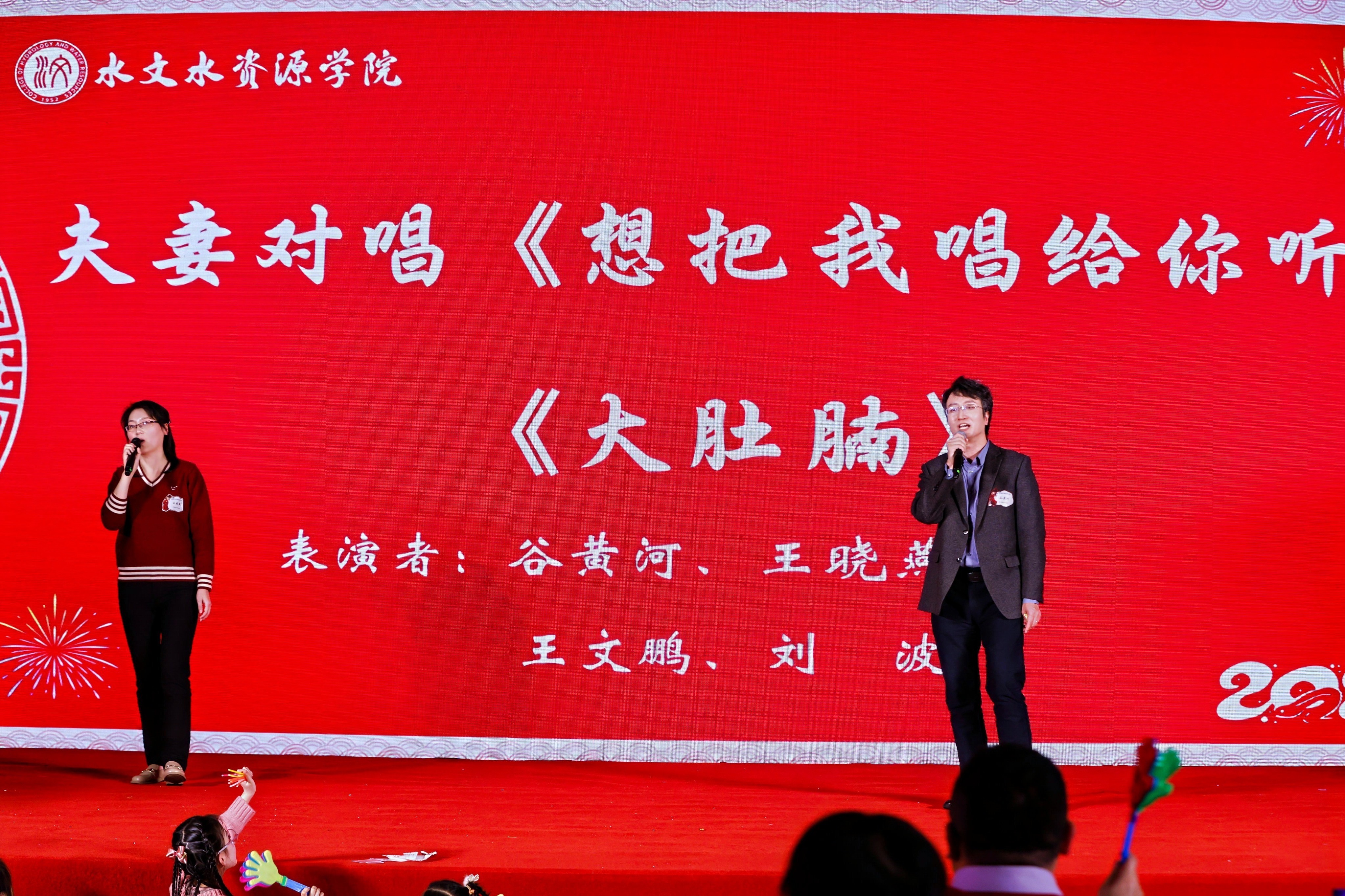 王文鹏、刘波,谷黄河、王晓燕两对教师夫妻以温馨对唱为活动增添了浪漫氛围;学生魔术表演《魔旅》惊喜不断,令观众大开眼界;水务工程研究所老师们的三句半节目《辞旧迎新》欢快有趣,表达了对新年的美好憧憬;徐斌副院长深情演绎的《红日》激昂有力,赢得阵阵喝彩;生态水文研究所老师们的流行歌曲串烧旋律优美,动人心弦;全球变化研究所老师们的舞蹈串烧展现了别样活力,令人耳目一新。