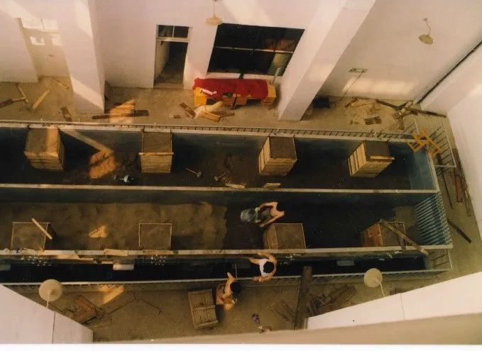 大型变坡土槽也是实验室重要的大型实验设施,大型变坡土槽建设的目的是开展水土流失和土壤中水分和溶质迁移转化规律研究,因此,土槽的设计和回填土的土壤类型有较高的要求,在土壤厚度上需要保证在一次降雨入渗过程中下渗水能够达到土槽底部形成地下水,同时在土槽长度上保证在出口断面能够形成地表水、壤中流和地下水过程。郝老师在调研了中科院地理所、陕西机械学院、西北林学院、水文地质工程地质研究所和铁道部峨眉径流实验站土槽设施基础上,通过分析模拟不同土壤的水分过程,最终确定大型变坡土槽长12m、宽3m、深1.5m、可变坡范围0~30°,取用长江江心洲淤积沙性土壤进行回填。土槽土壤回填过程也是保障实验可靠性的关键环节,郝老师带领团队青年教师在炎热的夏天,在保证安装土壤水分传感器稳定性和抽取水样可靠性的基础上,严格按照容重标准一层一层回填土壤,保质保量完成了土槽设施的建设任务。同时配合土槽上空高20m的人工降雨系统,可保证雨滴能量到达土槽土壤表面时接近天然雨滴能量的90%以上,满足开展水土流失实验的要求。至今为止大型变坡土槽和人工降雨系统在开展水文基础实验方面仍然发挥着重要作用。