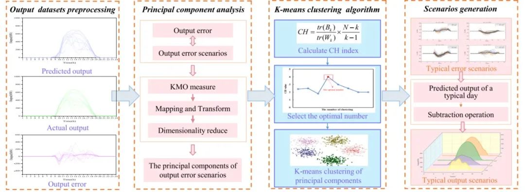 调峰调度是水库调度的核心任务之一。然而,光伏等新能源出力具有强随机性、波动性和反调峰等特性,极大加剧了电网调峰困难。为此,团队研究了光伏出力预测误差时空分布特征,构建了基于主成分降维和动态聚类的典型场景生成模型,实现对光伏预测出力的精细表征,进而提出了考虑光伏出力不确定性的水光互补调峰调度方法法,增强了水库灵活调节能力,有效降低了电网负荷峰谷差,为水光互补调度方案科学制定提供了技术支撑。